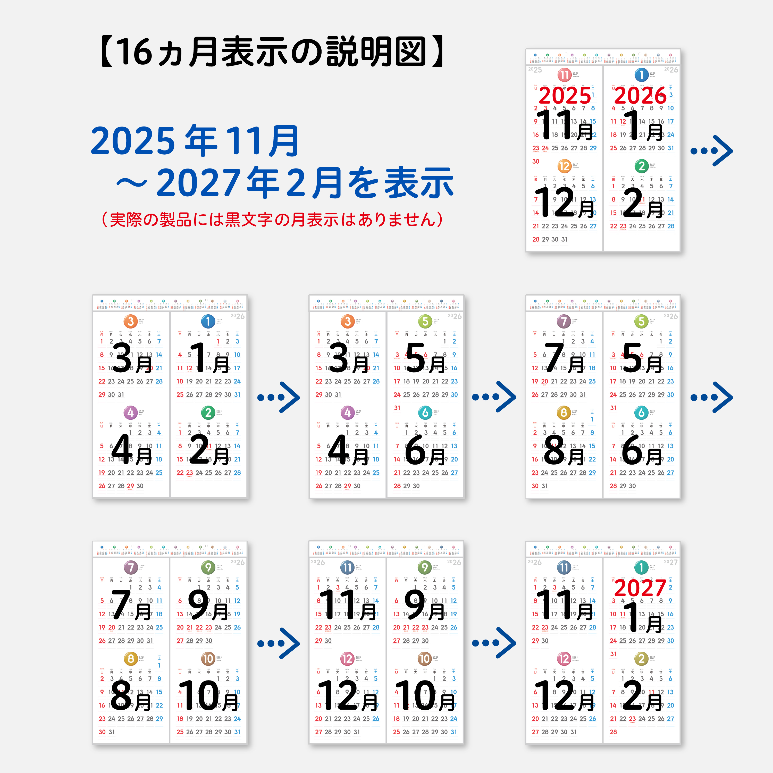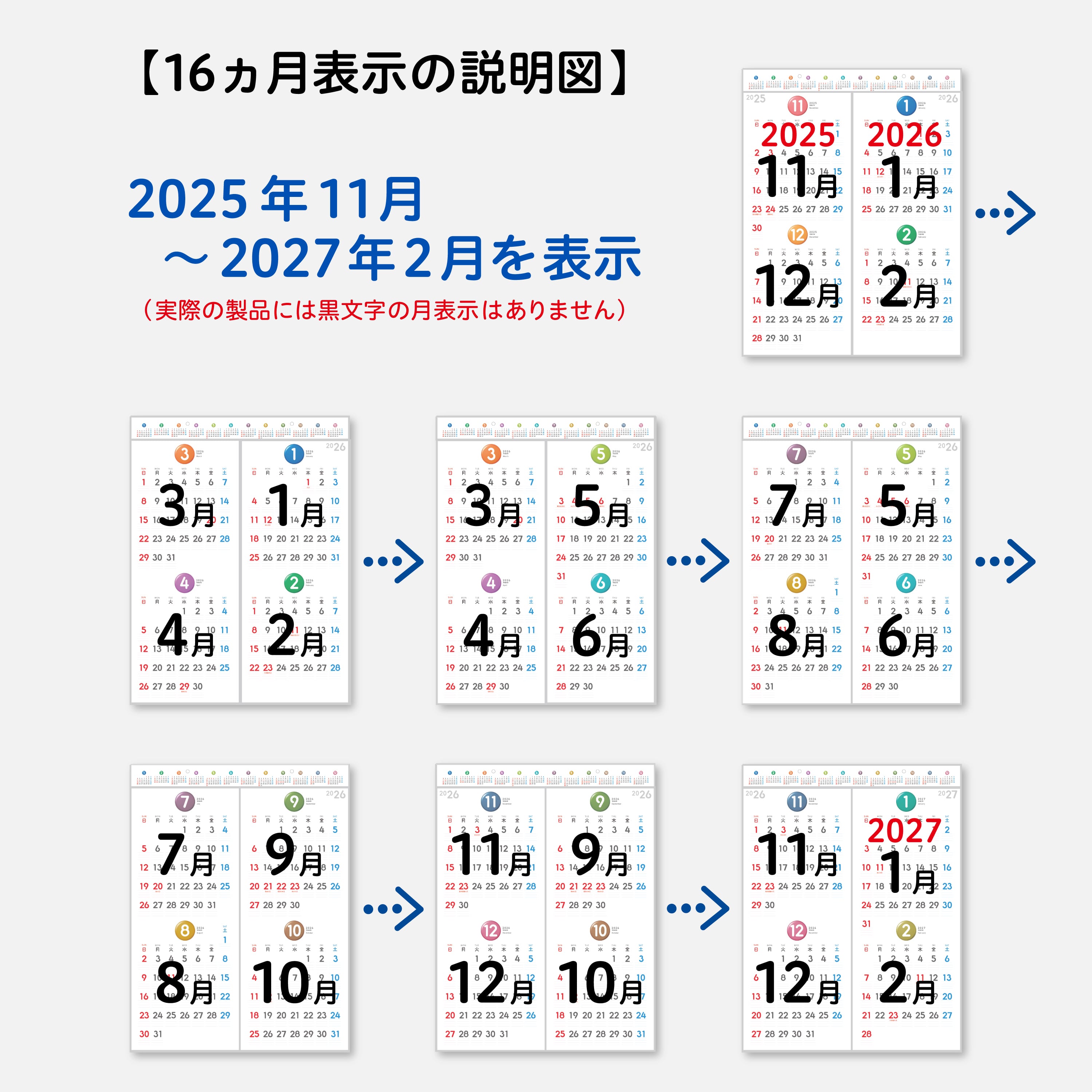 【掲載月数】1面あたり:4ヵ月(2ヵ月×2枚)、全体:16ヵ月分(2025年11月〜2027年2月)