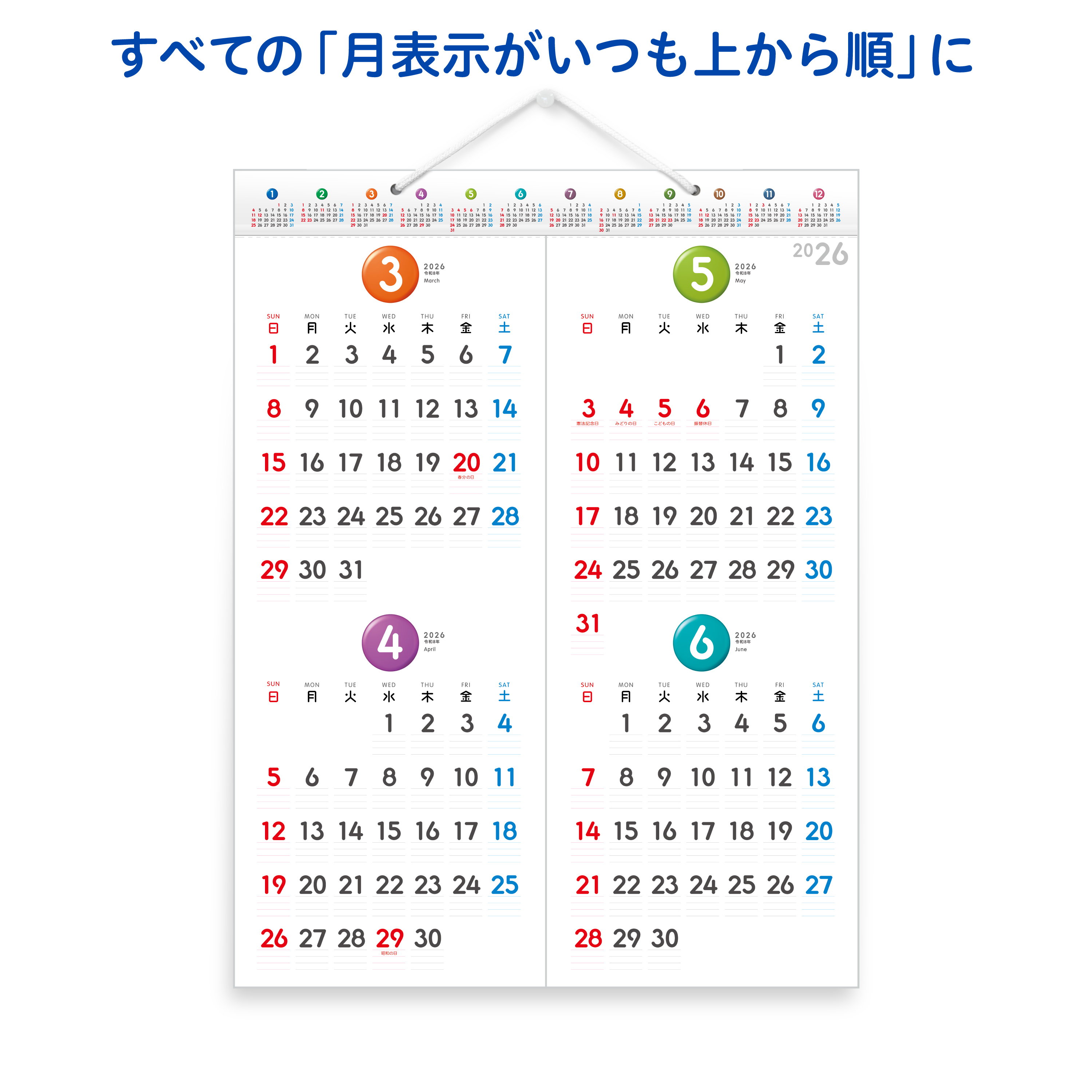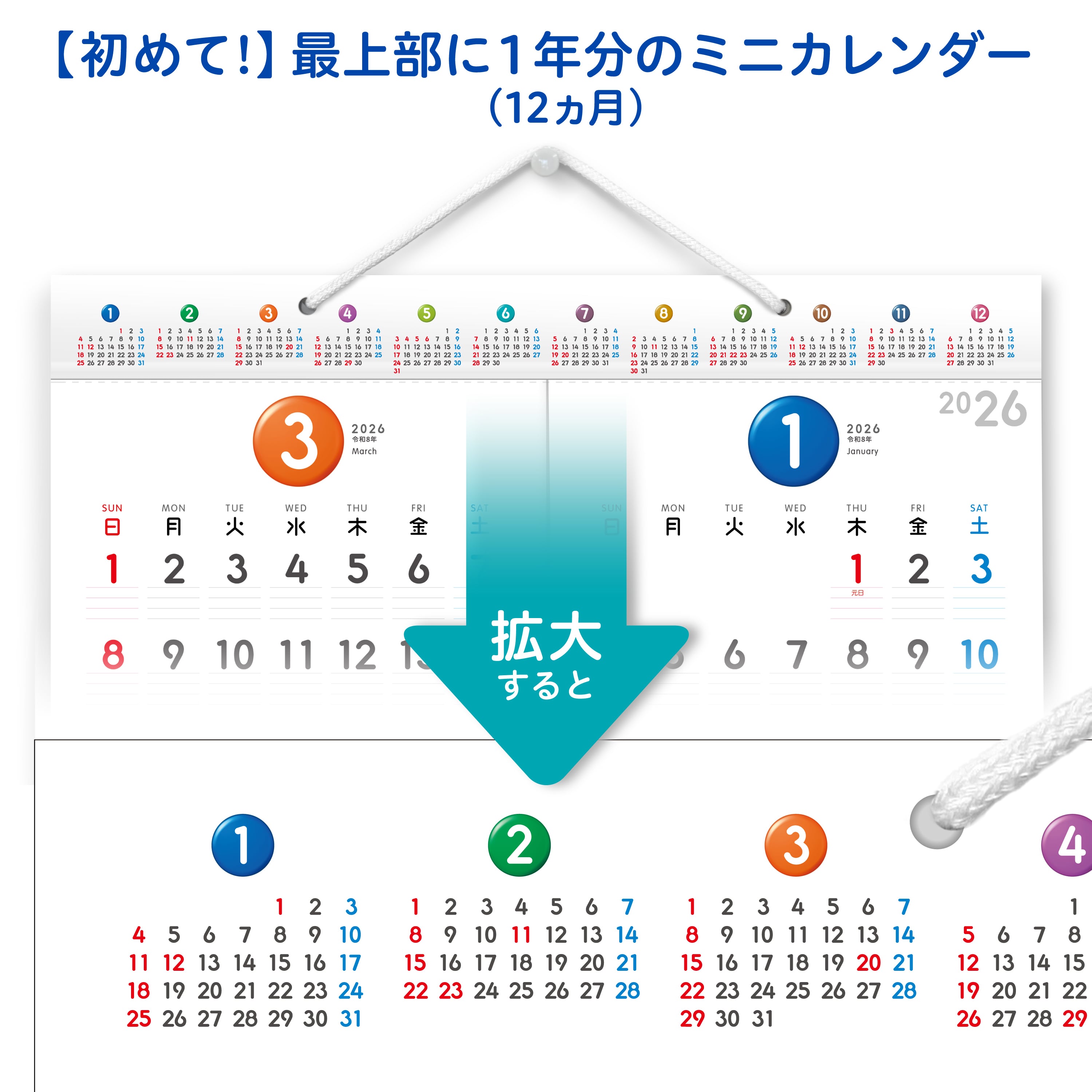 【上部のミニカレンダー】12ヵ月(2026年1年間)